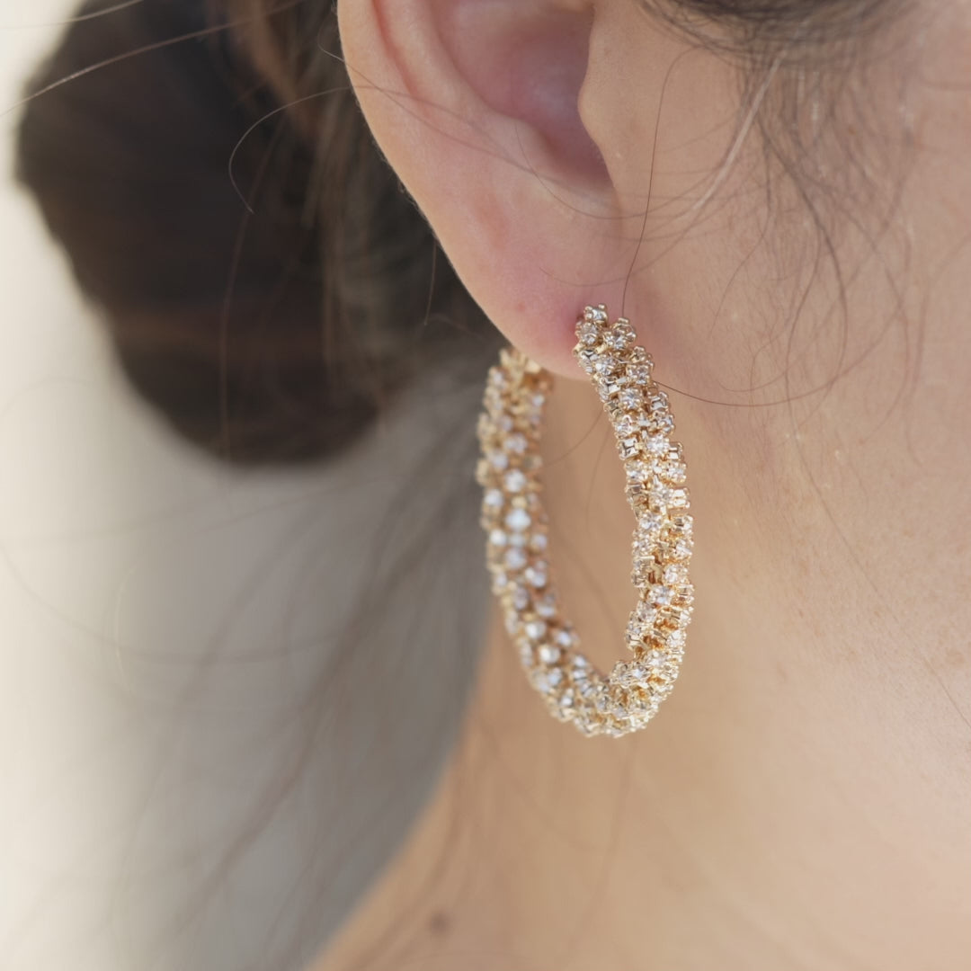 Brilliance from every angle. Plated in 14K gold or 14K white gold and set with AAA Cubic Zirconia, these hoops sparkle effortlessly, catching the light with every movement. Crafted in Korea for superior quality, they offer long-lasting shine and elegance—a timeless statement piece for any occasion.